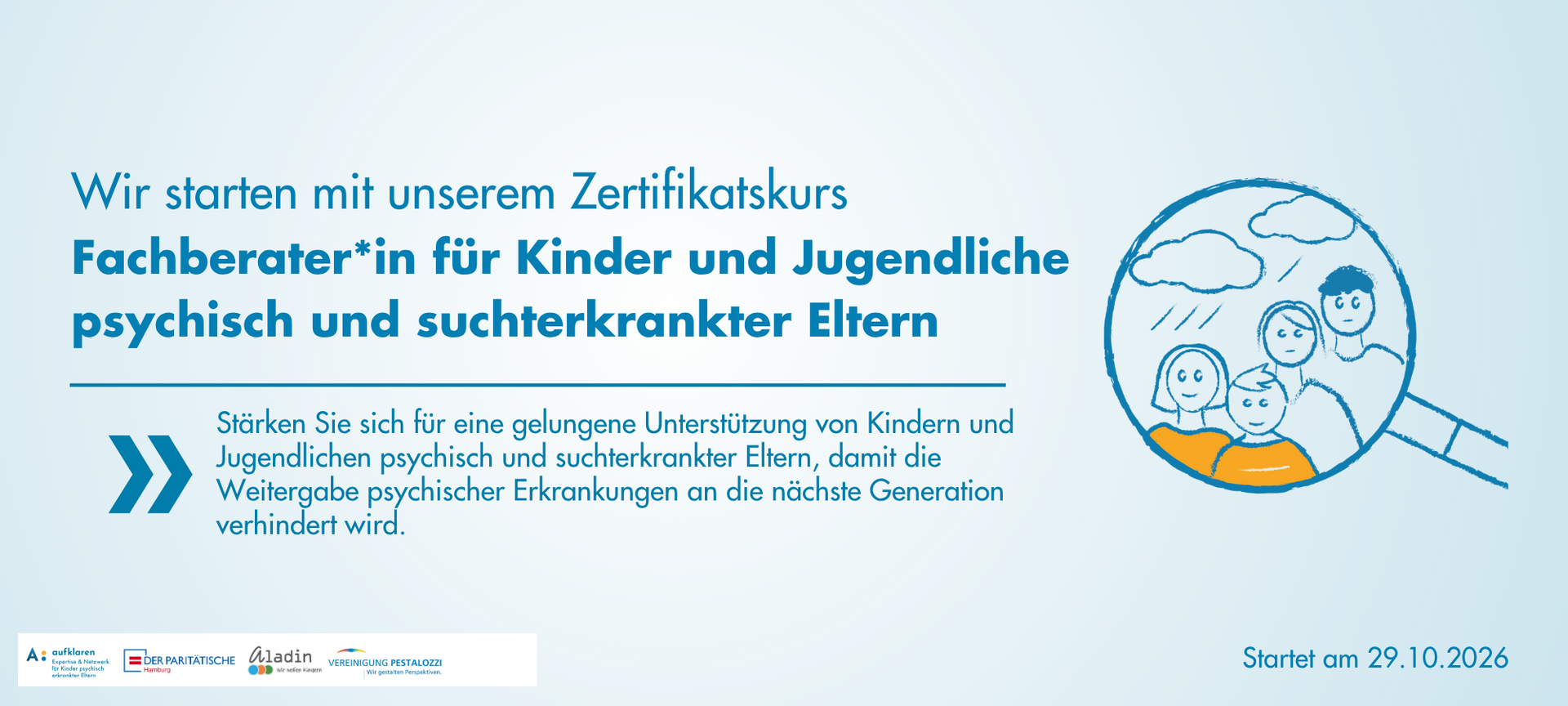 Wir sind ein Hamburger Projekt unter der Trägerschaft des PARITÄTISCHEN, das sich zum Ziel gesetzt hat, dass Kinder von psychisch erkrankten Eltern in unserer Gesellschaft gesehen und mit ihren Bedürfnissen wahrgenommen werden. Damit das gelingt, sensibilisiert und vernetzt A: aufklaren (sozial-) pädagogische, therapeutische und medizinische Fachkräfte wie Erzieher*innen, Lehrer*innen, Ärzt*innen oder Hebammen und stärken ihre Handlungssicherheit. Für alle Fachkräfte gibt es bei uns Beratung, Fortbildung, Fachinfos und Netzwerke.