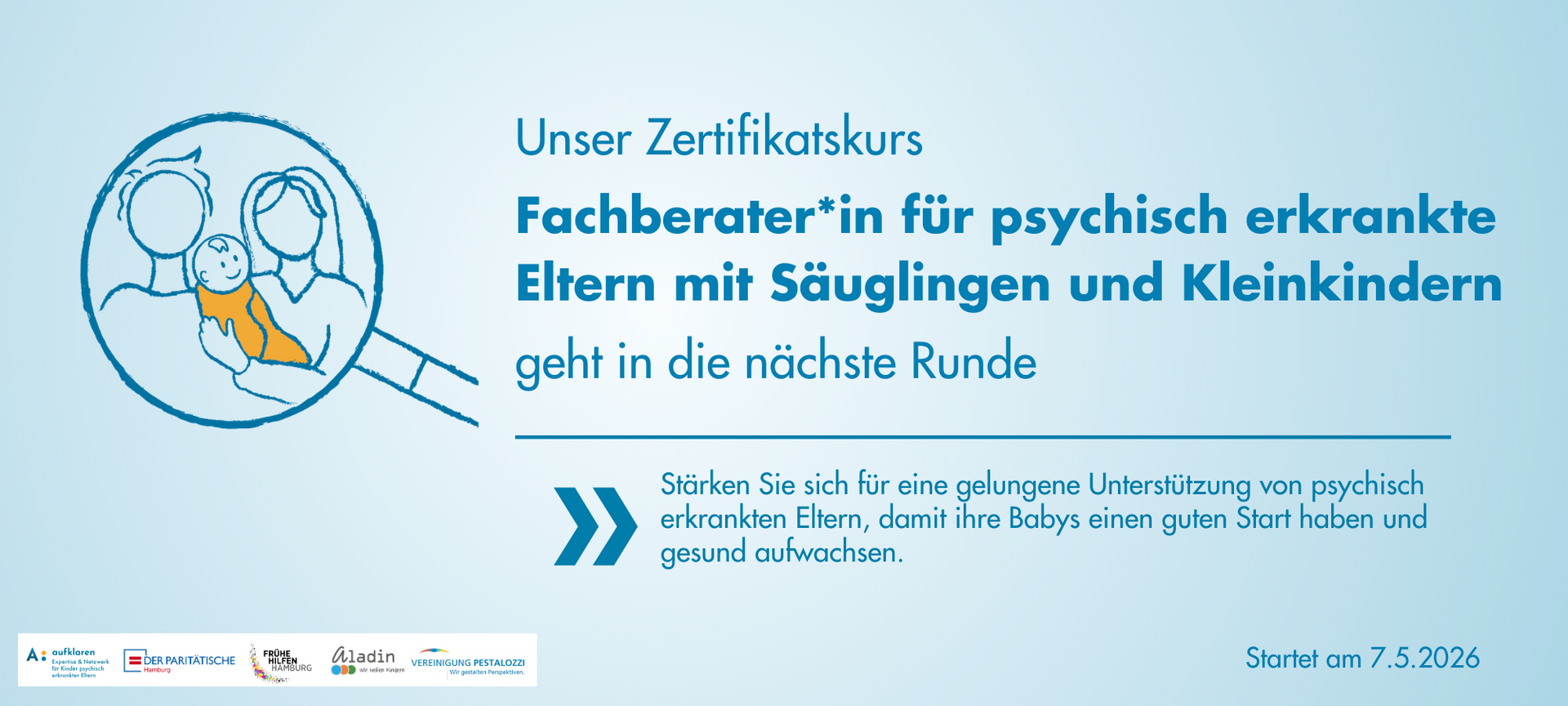 Wir sind ein Hamburger Projekt unter der Trägerschaft des PARITÄTISCHEN, das sich zum Ziel gesetzt hat, dass Kinder von psychisch erkrankten Eltern in unserer Gesellschaft gesehen und mit ihren Bedürfnissen wahrgenommen werden. Damit das gelingt, sensibilisiert und vernetzt A: aufklaren (sozial-) pädagogische, therapeutische und medizinische Fachkräfte wie Erzieher*innen, Lehrer*innen, Ärzt*innen oder Hebammen und stärken ihre Handlungssicherheit. Für alle Fachkräfte gibt es bei uns Beratung, Fortbildung, Fachinfos und Netzwerke.
